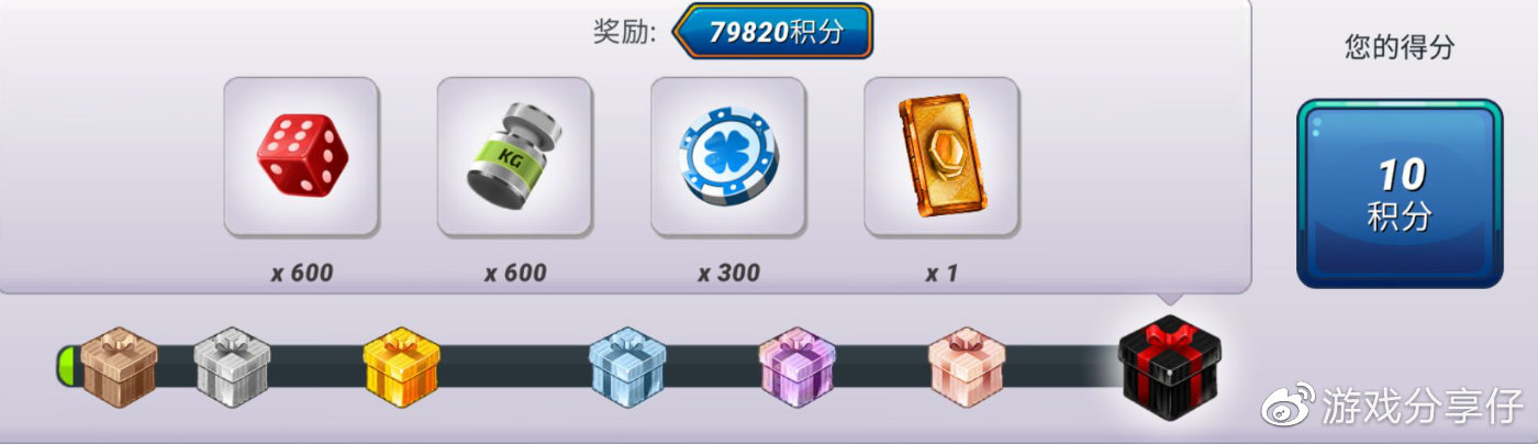 而随着积累的积分越来越高,我们能够解锁的奖励也越来越多,最后的黑奖甚至能够得到六百个“钓起几率”道具、“重量+15%”道具、三百个“幸运值100%”还有代币黄金包。而除了黑奖以外,在黑奖之前的奖励梯度也能够给很多道具资源,等同于是我们在日常使用这些道具的过程中,系统就白送了很多的东西。