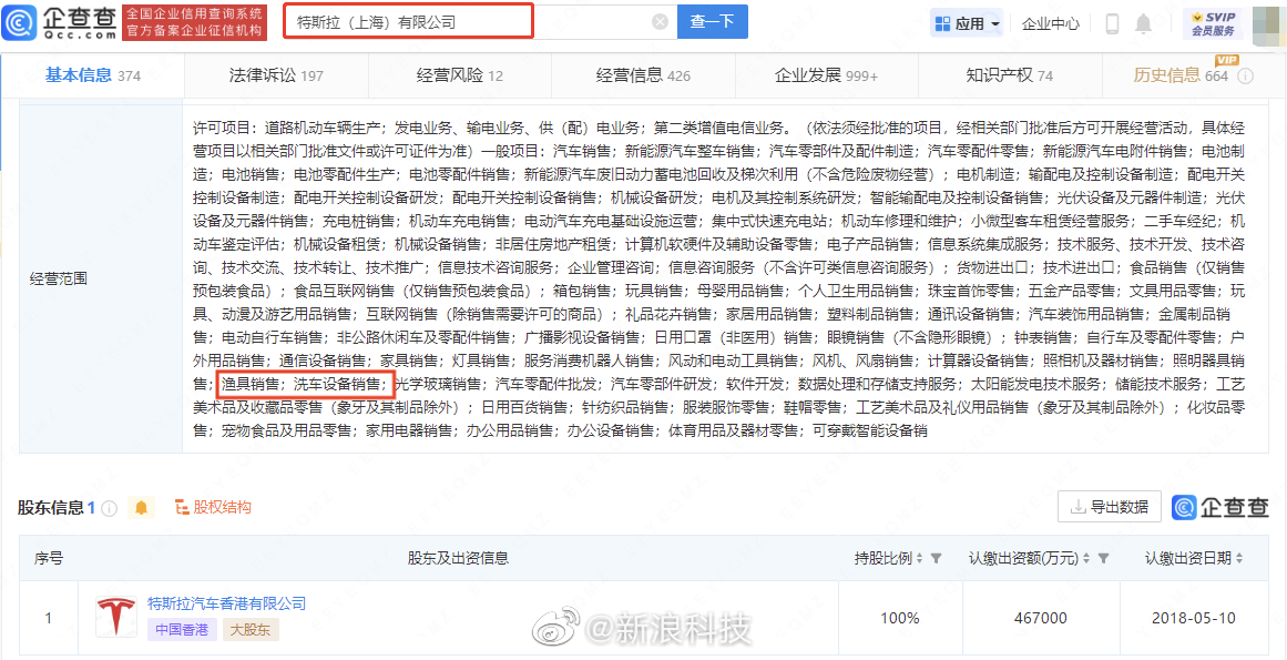 【#特斯拉新增渔具销售业务#】#特斯拉要卖渔具#企查查APP显示,近日,特斯拉(上海)有限公司发生工商变更,经营范围变更为电动自行车销售;非公路休闲车及零配件销售;眼镜销售;钟表销售;渔具销售;可穿戴智能设备销售等。